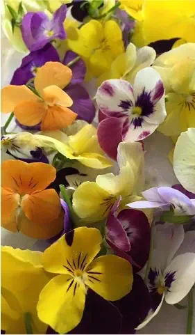La Viola es una pequeña flor de colores variados con un sabor y aroma muy tenues. Es susceptible a las temperaturas, se deshidrata fácilmente, pero se hidrata nuevamente en agua fría. Disponible todo el año bajo invernadero.